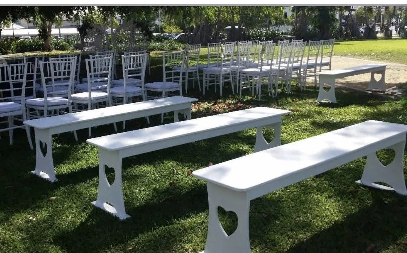 6 x white wooden benches